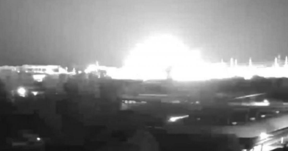 Momento del impacto de un misil contra el polígono industrial de la central nuclear Ucrania del Sur.